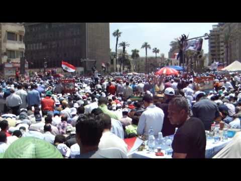 Zuvor hatte der Prediger Mazhar Shaheen mit einer ägyptischen Flagge in der Hand zur Verteidung der Ziele der Revolution aufgerufen. Er forderte die Menge, die mit Allah Akbar-Rufen (Gott ist größer) antwortete, unter anderem dazu auf, sich nicht spalten zu lassen und die Revolution fortzusetzen. Dazu gehöre unter anderem, dass Ägypten ein ziviler Staat bleiben müsse, Vertreter des alten Regimes, die so genannten Felul, keine Macht mehr haben dürften, die neue Verfassung nicht unter einem Militärregime geschrieben und die Präsidentschaftswahlen nicht verzögert werden dürften